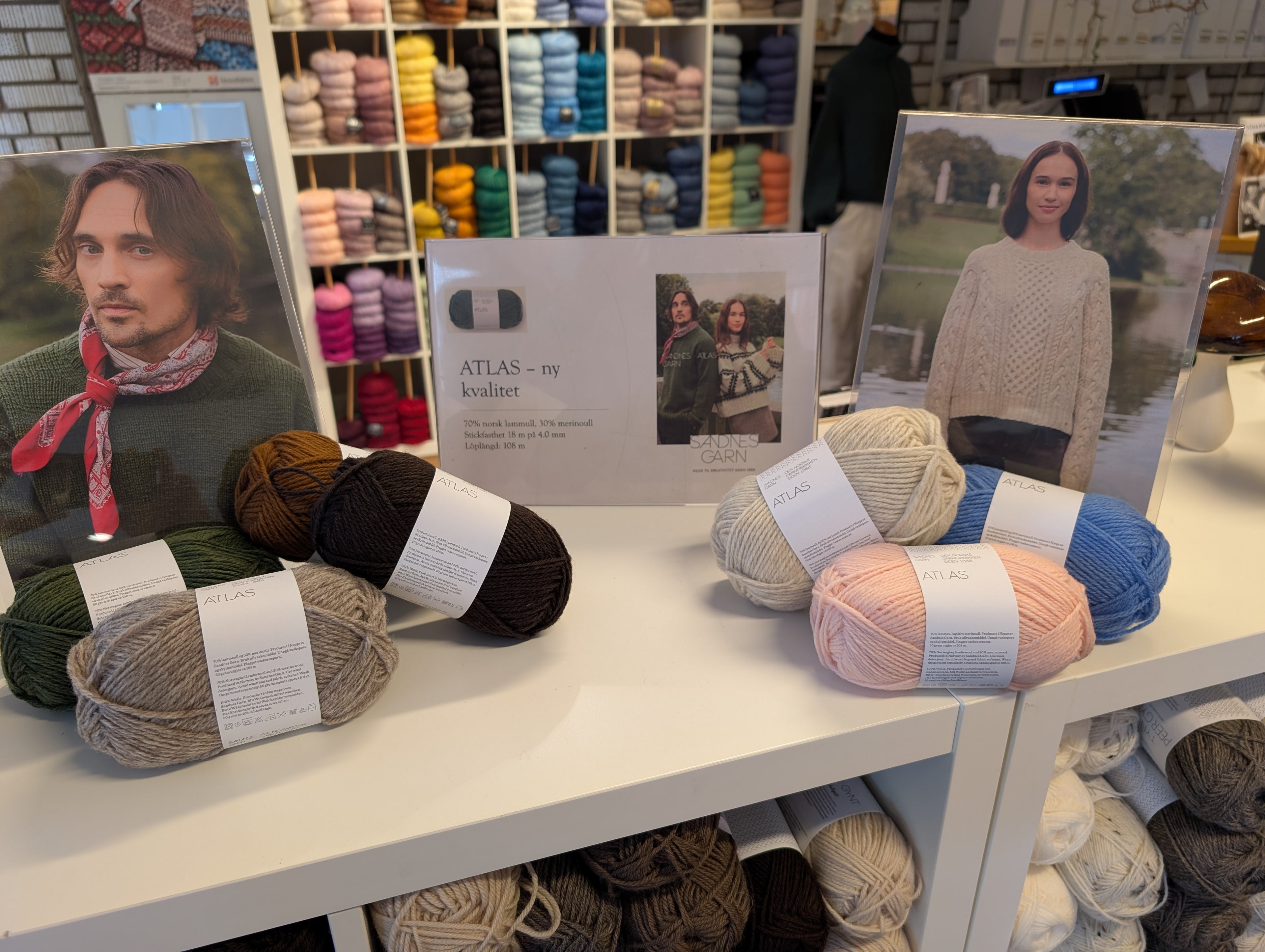 Vi erbjuder allt från de klassiska materialen, via modegarner till de mer lyxiga garnerna. Vi har valt att arbeta med norska Sandnes Garn, tyska Lana Grossa, danska Geilsk och isländska Istex. Vi har också några kvaliteter av Järbos ullgarner.